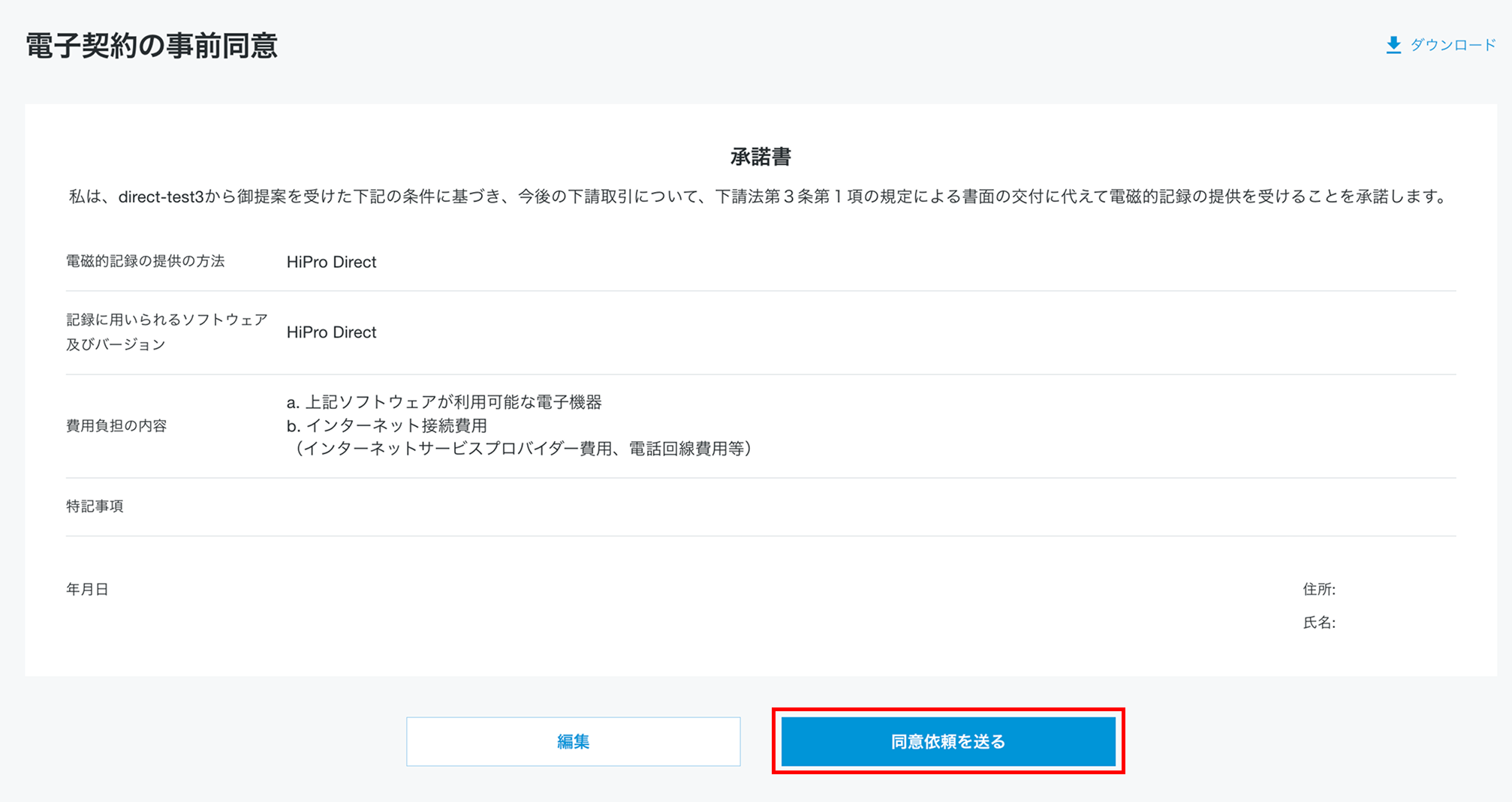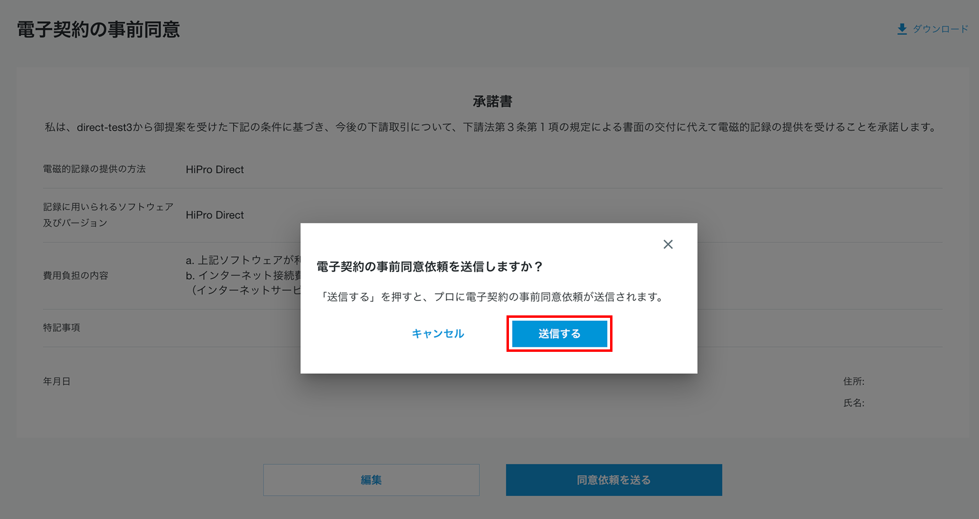 「電子契約の事前同意」の方法(法人会員)